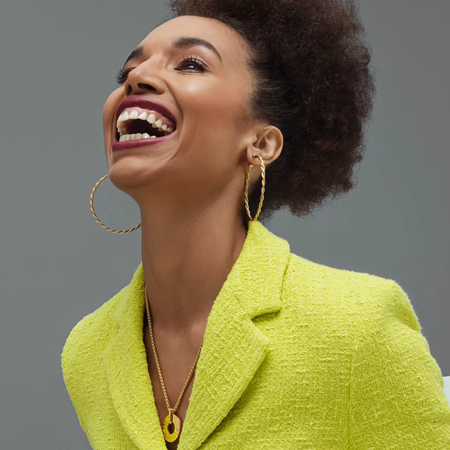 Earrings,Yellow Gold PVD Décor,2 rows cable Yellow Gold PVD + Steel, 1.5mm,Earrings diameter 40mm,Approx. weight 3 gram…